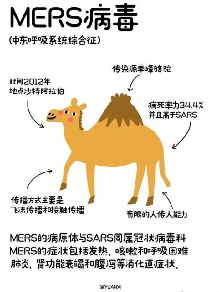 MERS-CoV最早于2012年9月在沙特被發現,早期因與SARS臨床癥狀相似得名“類SARS病毒”。從2012年9月開始,一種與SARS類似的新型冠狀病毒開始在沙特阿拉伯奪命,進而擴散到其他國家。2013年5月14日,世界衛生組織(WHO)已經確認的患者有38例。據世界衛生組織數據,自首例MERS病毒感染病例于2012年9月被確認起,截至2014年4月15日已致死92人,全世界已有228例。大多數MERS病毒感染病例發生在沙特。不過,歐洲也已確認MERS病毒感染病例,但全部病例據信與中東有關系。